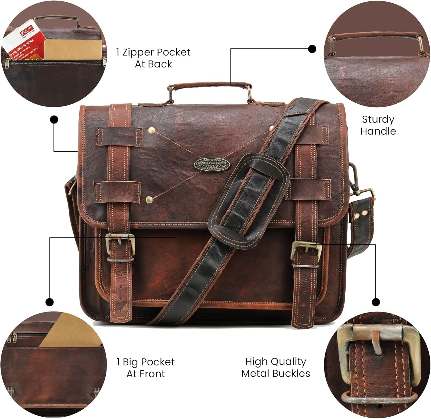Material: High-quality brown vintage leather, canvas lining